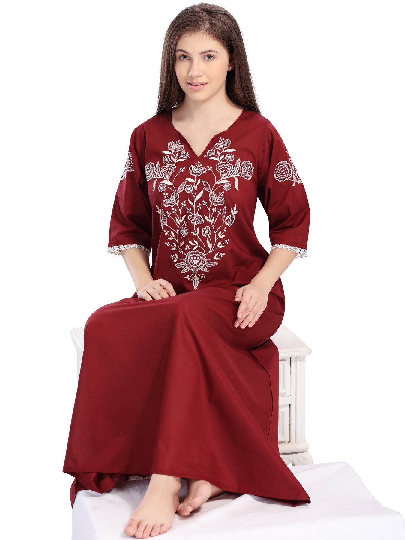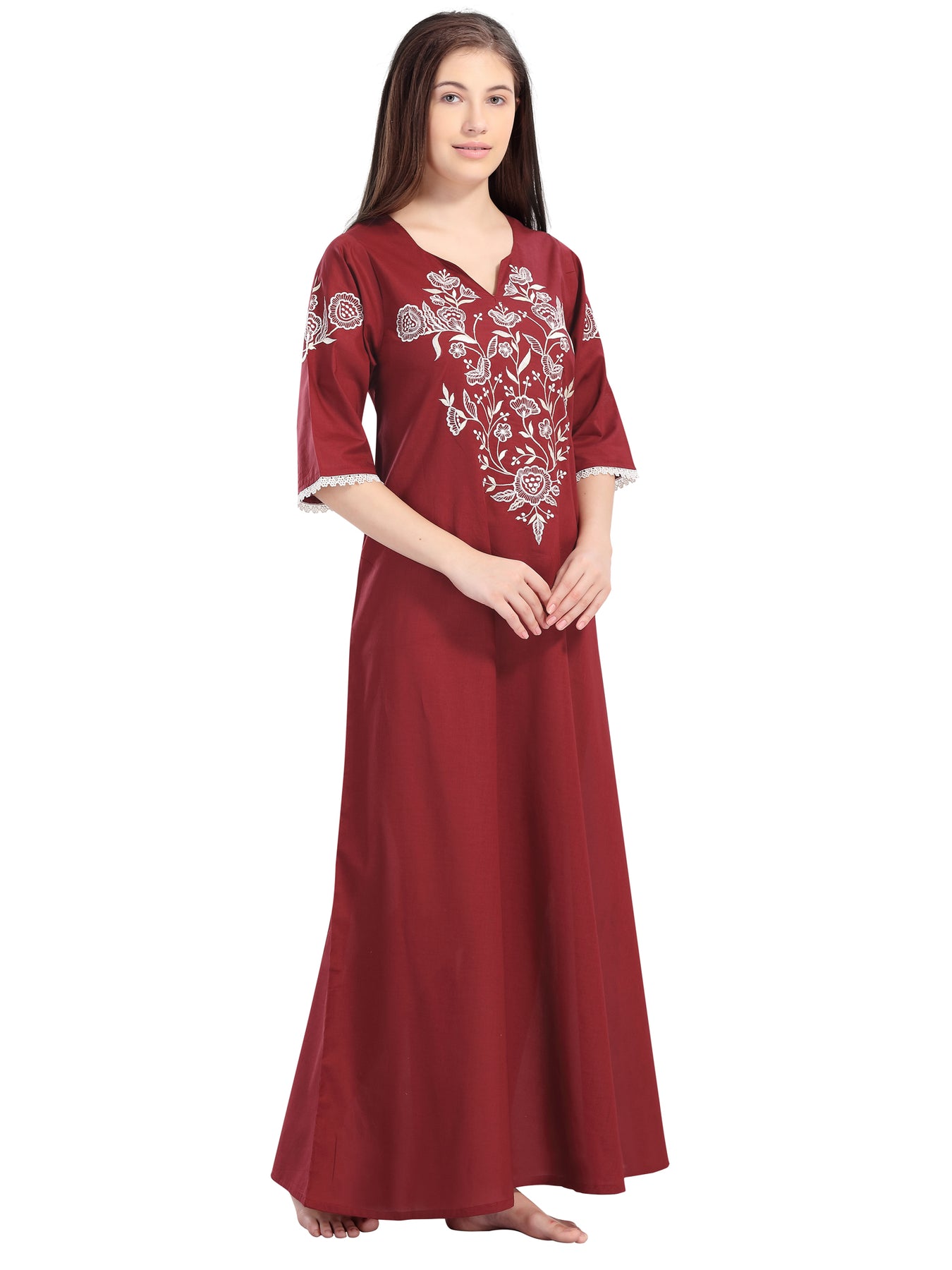 Heavy Embroidered Kolosh nightgown in Wine
