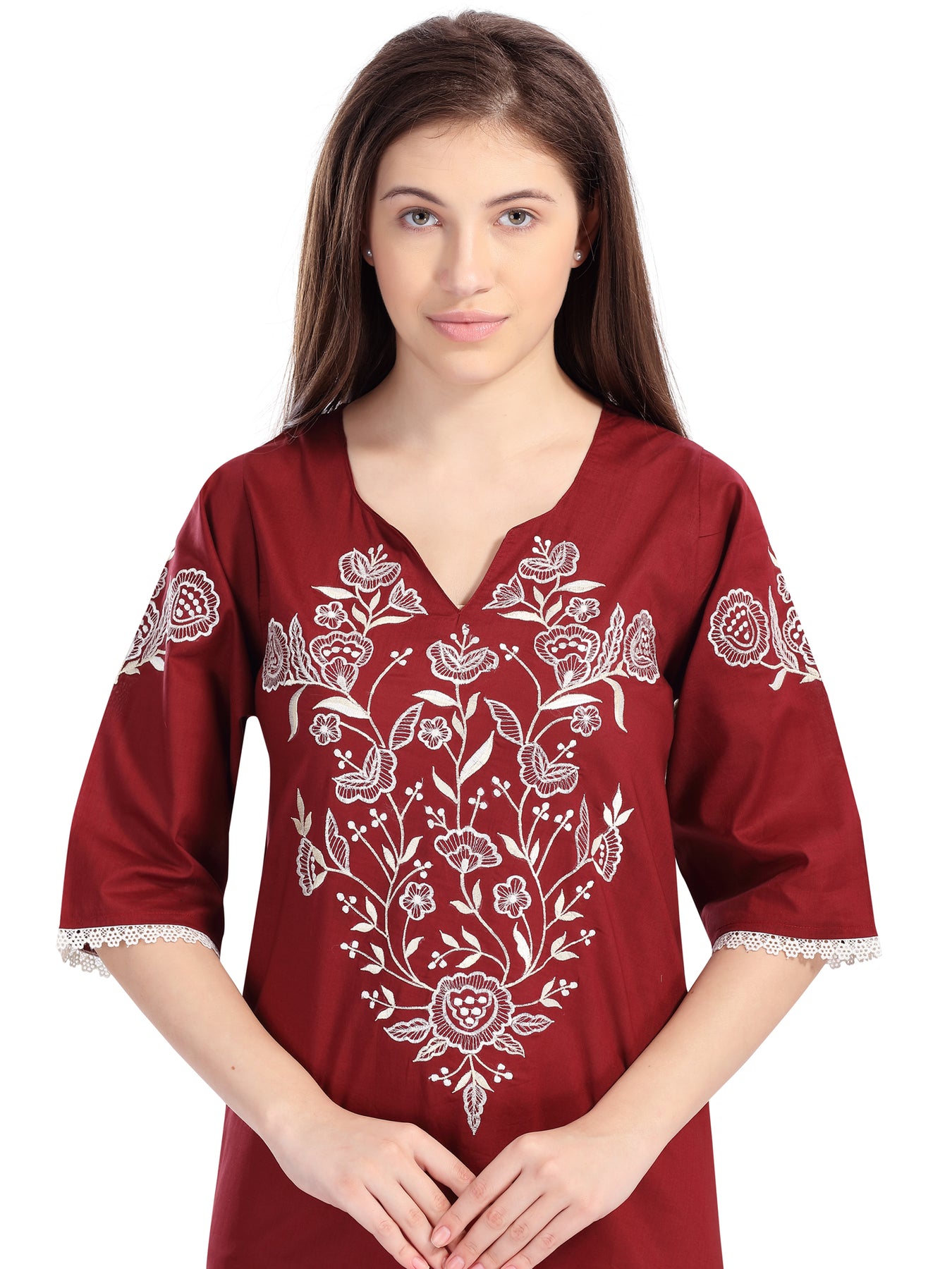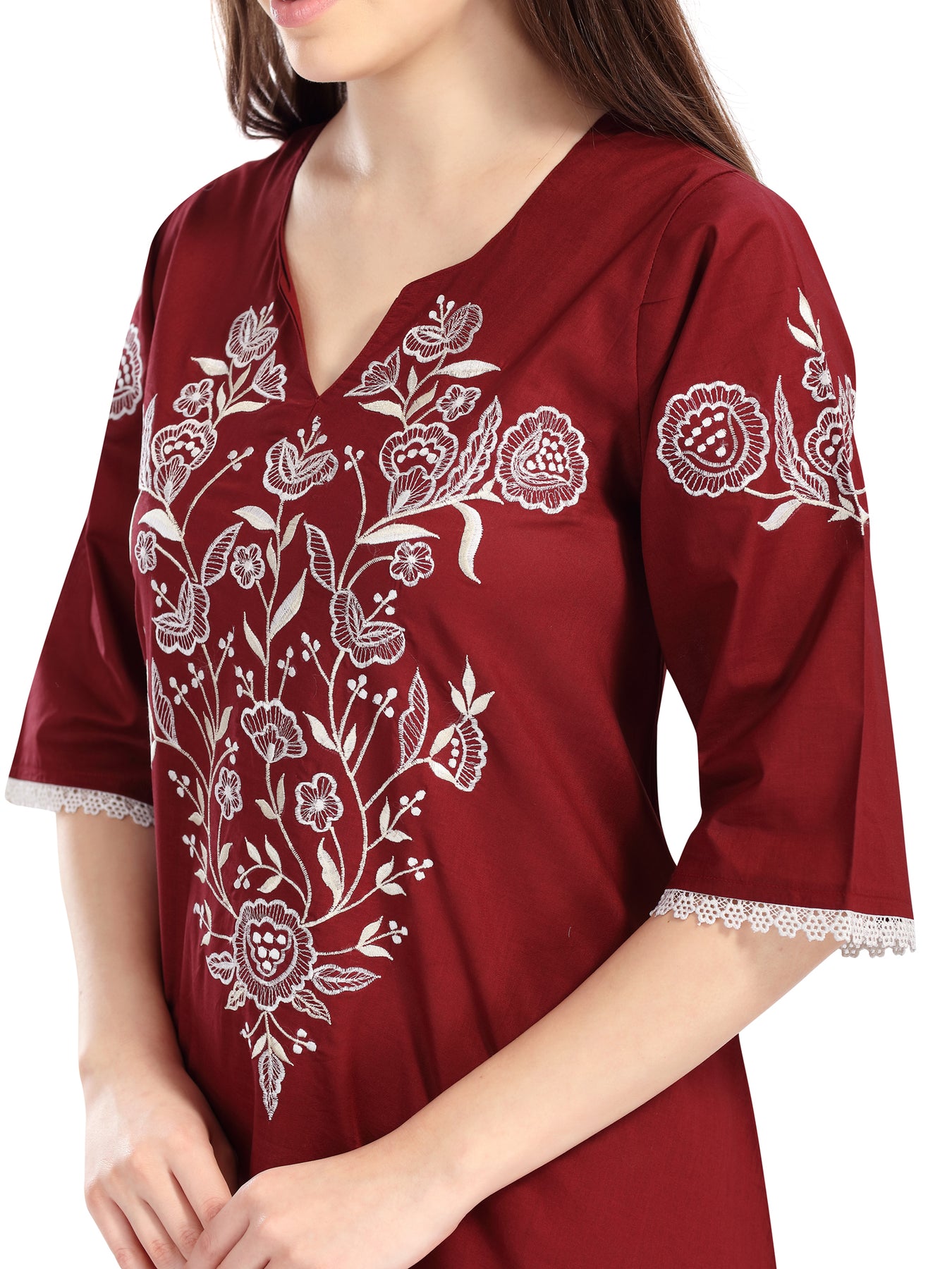 Stunning embroidered nightdress cut into a kolosh with a intricate, detailed embroidered across the chest.