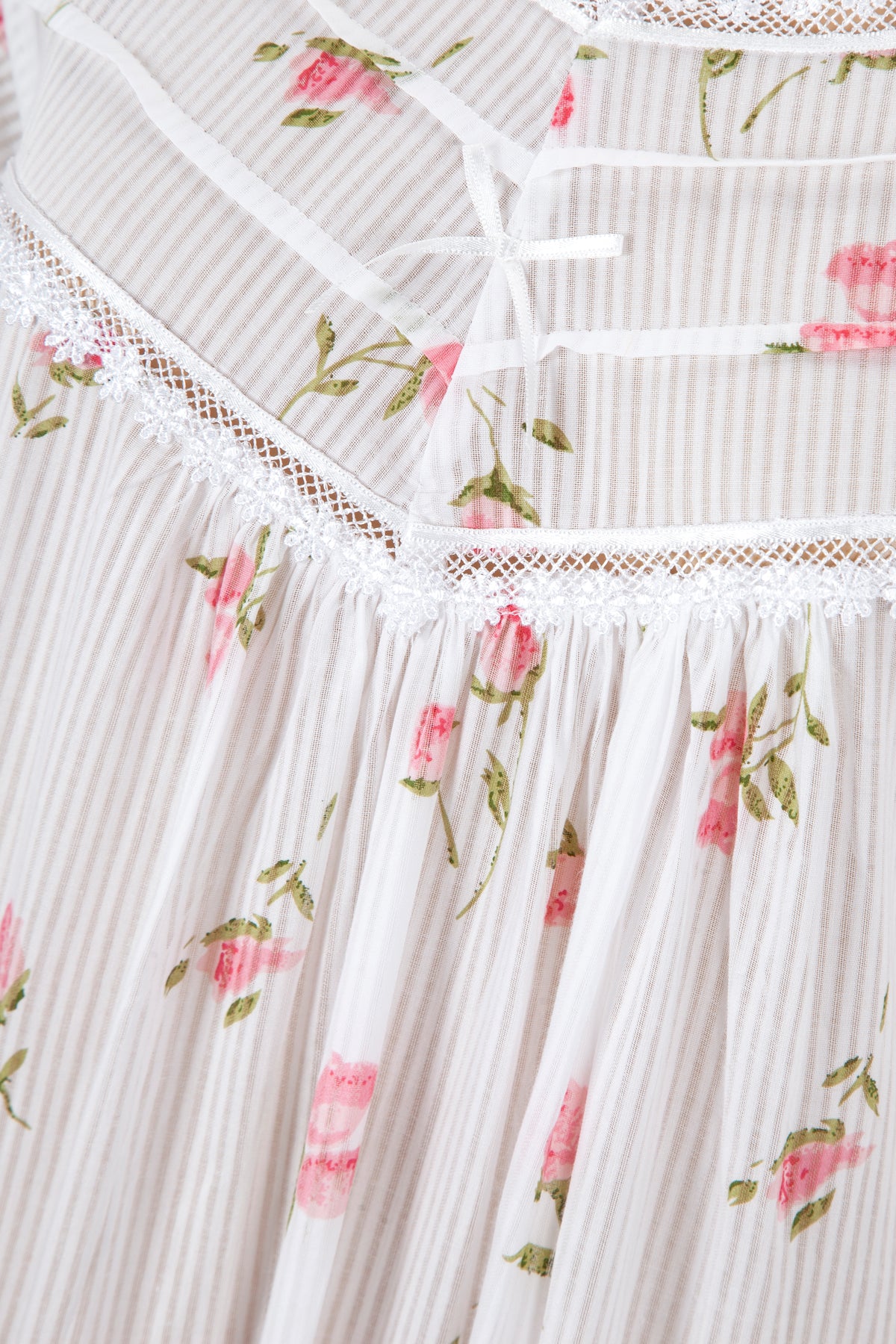 Delicate gatherings below the bust line enhance the comfort and line of this elegant nightgown.