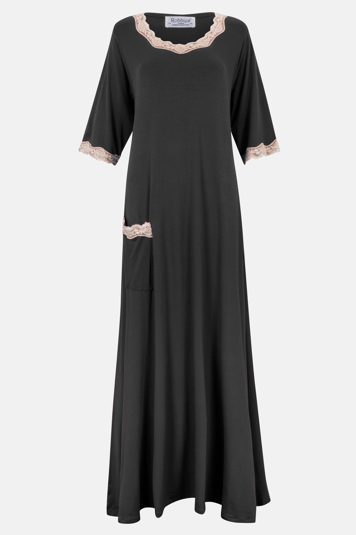 Beautifully soft, stretchy cotton fabric cut in a kolosh design, featuring a 3/4 sleeve and a pocket. This ultra soft nightgown drapes over your body and enhances every curve.