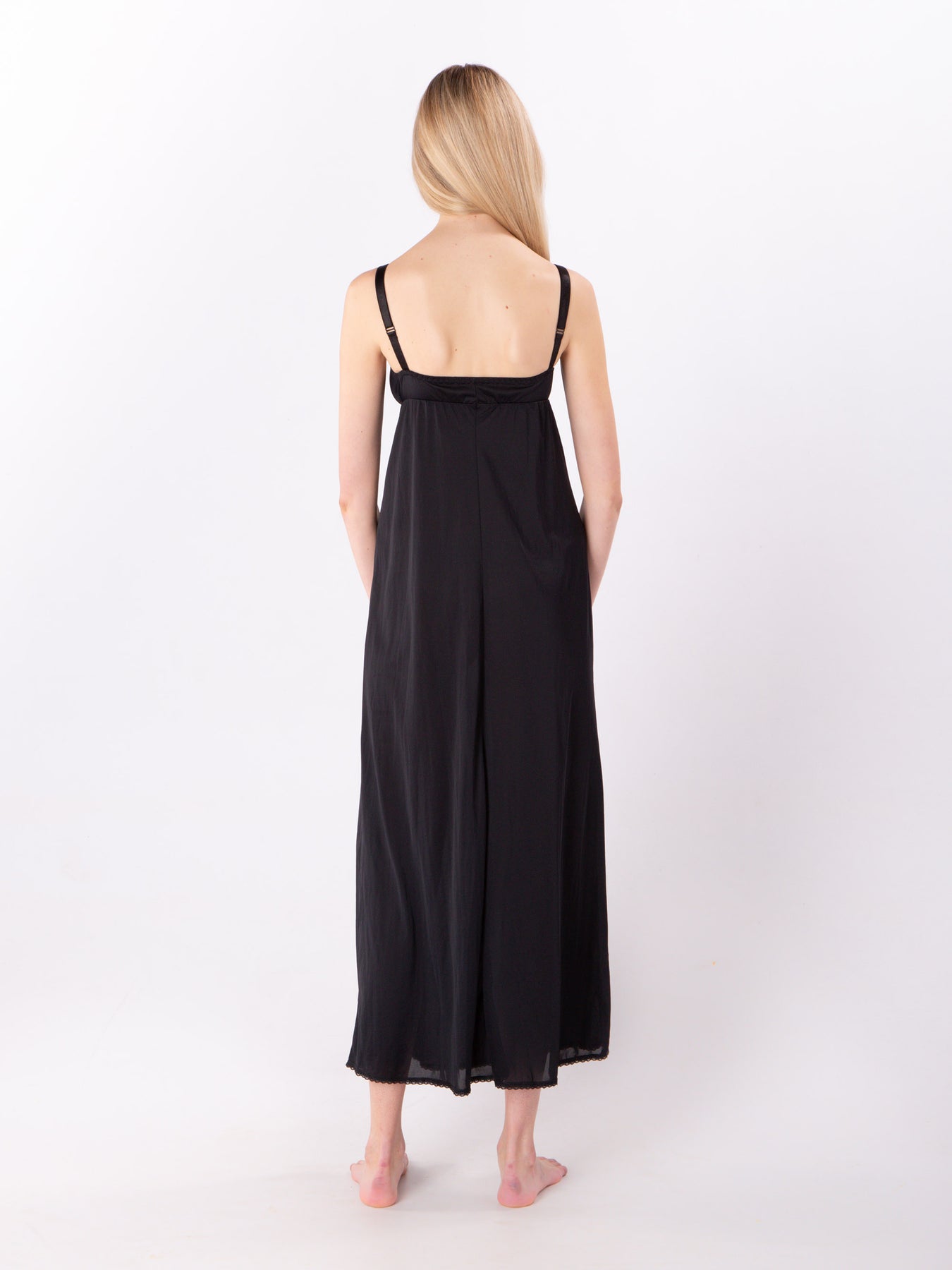 Long Embroidered Bra Slip in Black