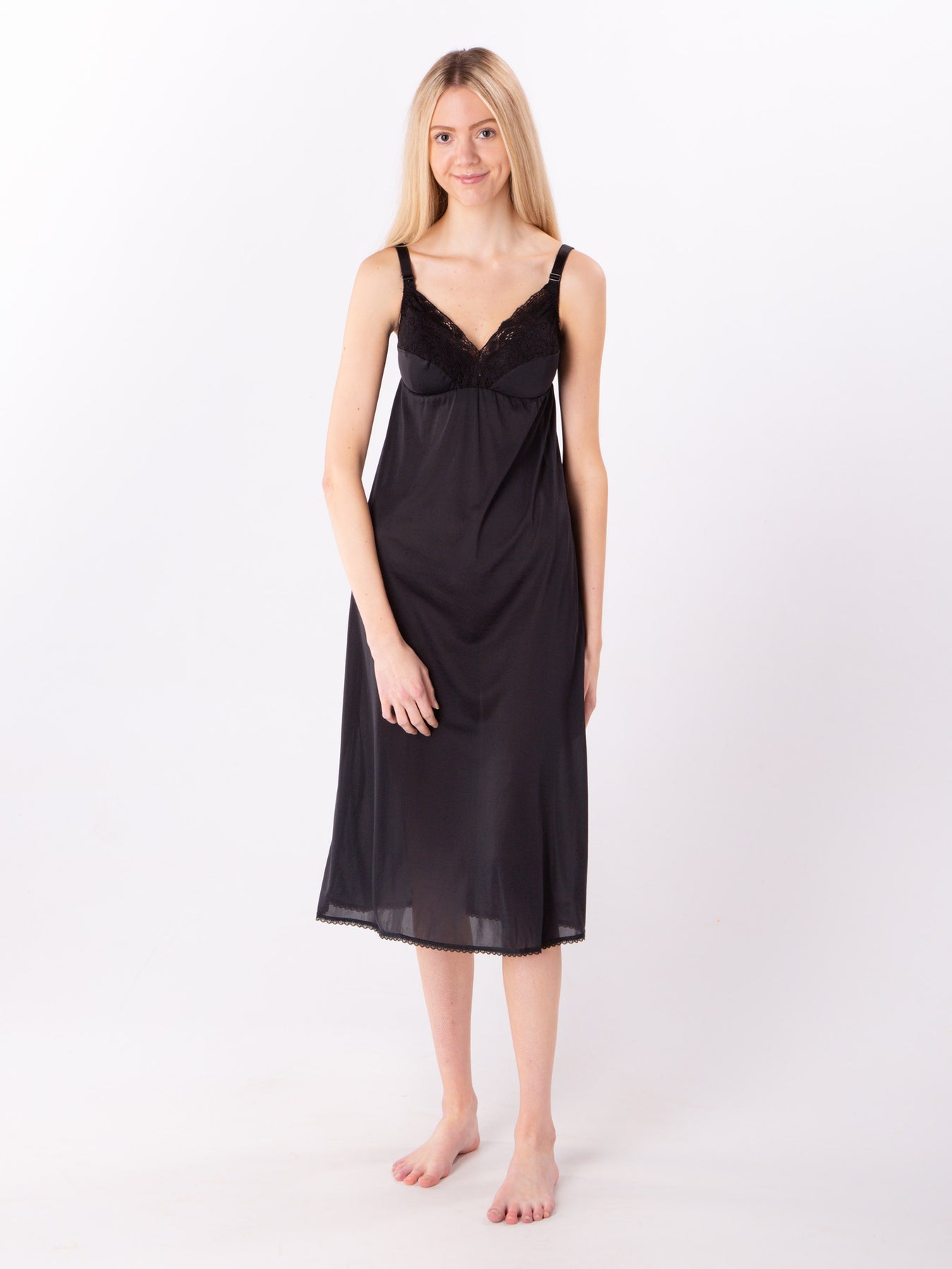 This traditional English bra slip is made from a silky soft polyester and features Luxury embroidered detailing across the chest. The reinforced wide straps ensure a comfortable and snug fit. The delicate lace trim at the bottom finishes this garment off.